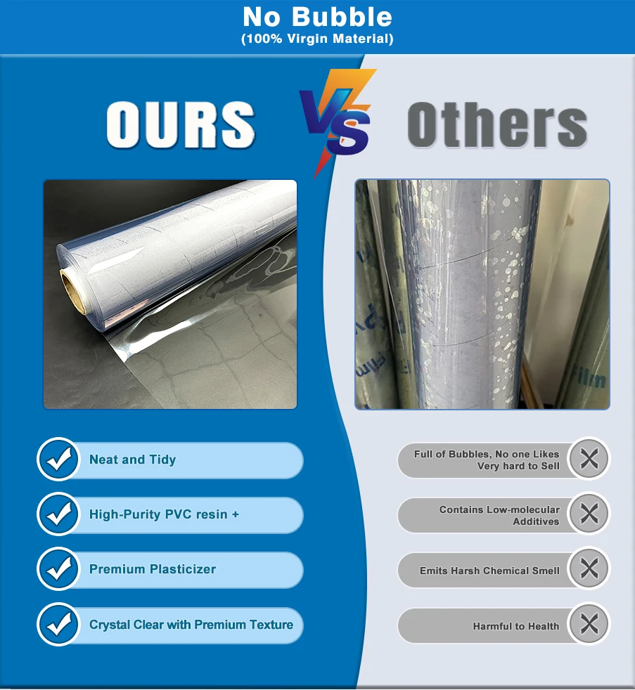 Upright 1-3 mm Thick Soft Clear Transparent Plastic Roll Soft PVC Roll clear Table Cover Protector
